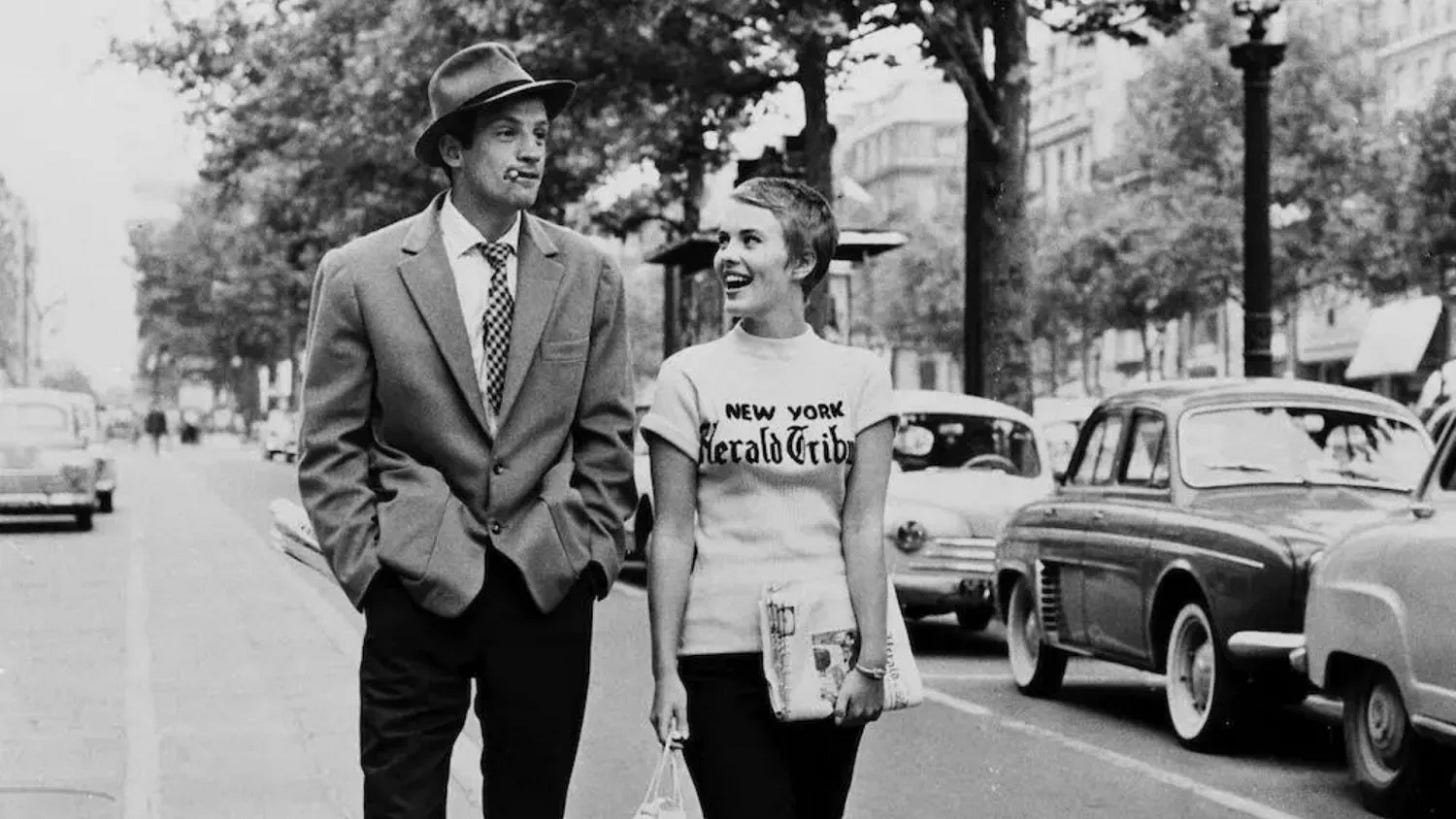 Siamo nella Parigi del 1959. Godard ha ventinove anni e si sente vecchio e in ritardo (maddai, non è poi così nuova questa sensazione di sentirsi in ritardo che ogni generazione pensa di provare per la prima volta..) è rimasto indietro rispetto ai colleghi dei Cahiers, Truffaut, Chabrol, Rivette, Rohmer hanno già un film alle spalle, e si butta a capofitto nel suo esordio con quella tipica hybris dei giovani che vogliono riscrivere le regole.